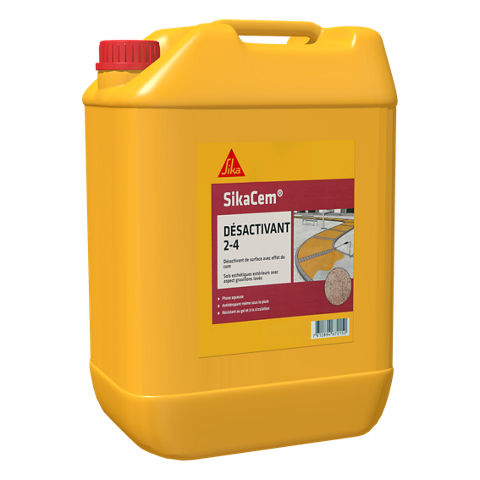 Το SikaCem® Désactivant 2-4 είναι επιφανειακός επιβραδυντής σκυροδέματος υδατικής βάσης, για δημιουργία επιφανειών με εμφανή αδρανή σε βάθος μεταξύ 2-4mm. Το SikaCem® Désactivant 2-4 διαθέτει επιπλέον εξαιρετικά χαρακτηριστικά βελτιωτικού ωρίμανσης.