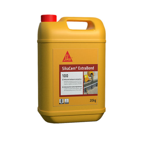 Το SikaCem® ExtraBond-100 είναι ένα συμπυκνωμένο, γαλακτώδες υγρό, πλούσιας υφής, κατάλληλο για χρήση σε μείγματα επισκευαστικών και στεγανοποιητικών τσιμεντοκονιαμάτων, σοβάδων ή κονιαμάτων δαπέδου.