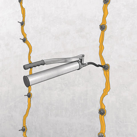 Σφράγιση και ενεμάτωση ρωγμών σε σκυρόδεμα και συμπαγείς τοιχοποιίες χρησιμοποιώντας:- Ενεμάτωση χαμηλής πίεσης με ρητίνη για κατακόρυφες, οριζόντιες ή πάνω από το κεφάλι εφαρμογές.