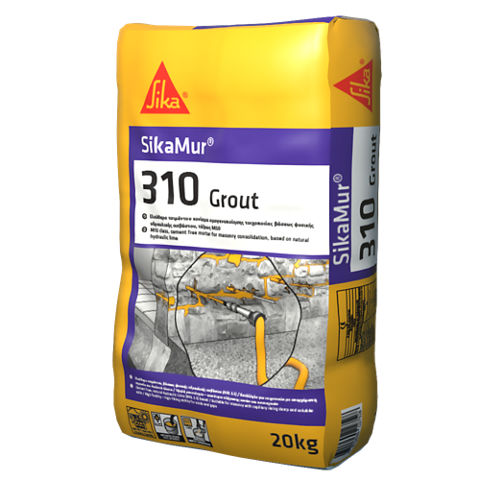 Το SikaMur®-310 Grout είναι έτοιμο για χρήση έγχυτο κονίαμα βάσεως φυσικής υδραυλικής ασβέστου (NHL 3.5) και ποζολάνης. Είναι ελεύθερο τσιμέντου, υψηλής ρευστότητας ένεμα, για ομογενοποίηση στοιχείων τοιχοποιίας. Εφαρμόζεται με βαρυτική έγχυση ή με χαμηλής πίεσης εισπίεση.