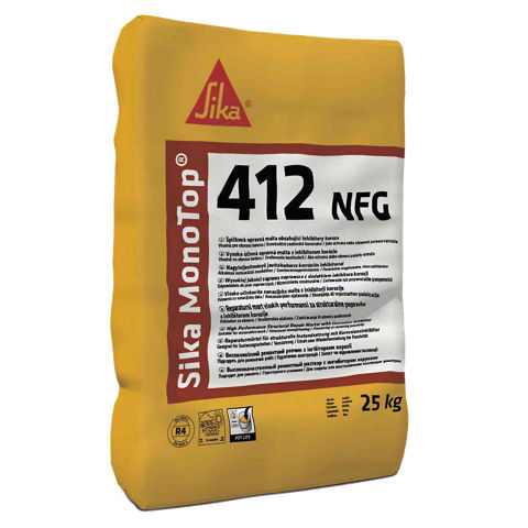 Το Sika MonoTop®-412 NFG είναι ενός συστατικού, τροποποιημένο με πολυμερή, ινοπλισμένο, μειωμένης συρρίκνωσης, επισκευαστικό κονίαμα δομητικών εφαρμογών με αναστολέα διάβρωσης, το οποίο πληροί τις απαιτήσεις της τάξεως R4 του ΕΝ 1504-3.