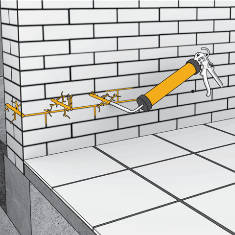 Τρυπήστε οριζόντια, απευθείας στο κονίαμα, κατά προτίμηση στις άκρες βάσεων των τούβλων της στρώσης που επιλέχθηκε. Μετά τις διαδικασίες ανοίγματος των οπών, κάθε μια οπή πρέπει να καθαριστεί λεπτομερώς χρησιμοποιώντας έναν καθαρό φυσητήρα ξηρού συμπιεσμένου αέρα.