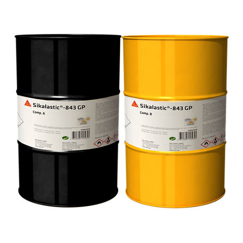 Η Sikalastic®-843 GP είναι δύο συστατικών, ελαστική, με 100% περιεχόμενο σε στερεά, ταχείας ωρίμανσης, έγχρωμη, βάσεως καθαρής (100%) πολυουρίας, υγρή, ψεκαζόμενη μεμβράνη στεγανοποίησης με πολύ υψηλή χημική αντοχή.