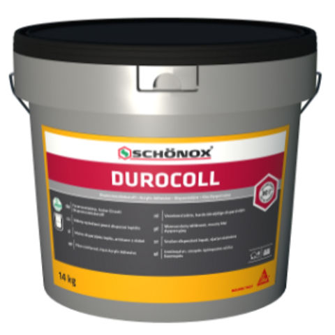 Η SCHÖNOX® DUROCOLL είναι ινοπλισμένη, ιδιαίτερα χαμηλών εκπομπών, ισχυρή κόλλα διασποράς, κατάλληλη για επικόλληση εύκαμπτων πλακιδίων από PVC και LVT, ρολών από PVC και CV καθώς και βελονωτών μοκετών σε απορροφητικά υποστρώματα. Κατάλληλη για εσωτερική χρήση.