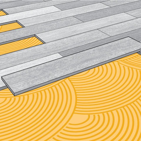 Ξύλινες σανίδες (π.χ. μοριοσανίδες V100, OSB, κόντρα πλακέ), όπως και γυψοσανίδες θα πρέπει να επικολληθούν και/ή να βιδωθούν στο υπόστρωμα για να είναι σταθερές. Απομακρύνετε εξάρσεις / προεξέχοντα τμήματα χρησιμοποιώντας κατάλληλο εξοπλισμό. Για κολυμπητά δάπεδα, παρακαλούμε επικοινωνήστε με το Τεχνικό Τμήμα της Εταιρείας.