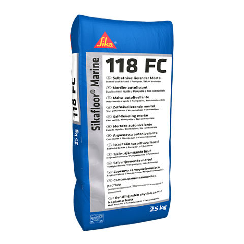 Το Sikafloor® Marine-118 FC είναι 1-συστατικού, αυτοεπιπεδούμενο, τσιμεντοειδές κονίαμα εξομάλυνσης καταστρωμάτων τροποποιημένο με πολυμερή. Το Sikafloor® Marine-118 FC είναι ελεγμένο κατά FTP και είναι εγκεκριμένο σύμφωνα με τις Οδηγίες της IMO (Marine Equipment Directives).